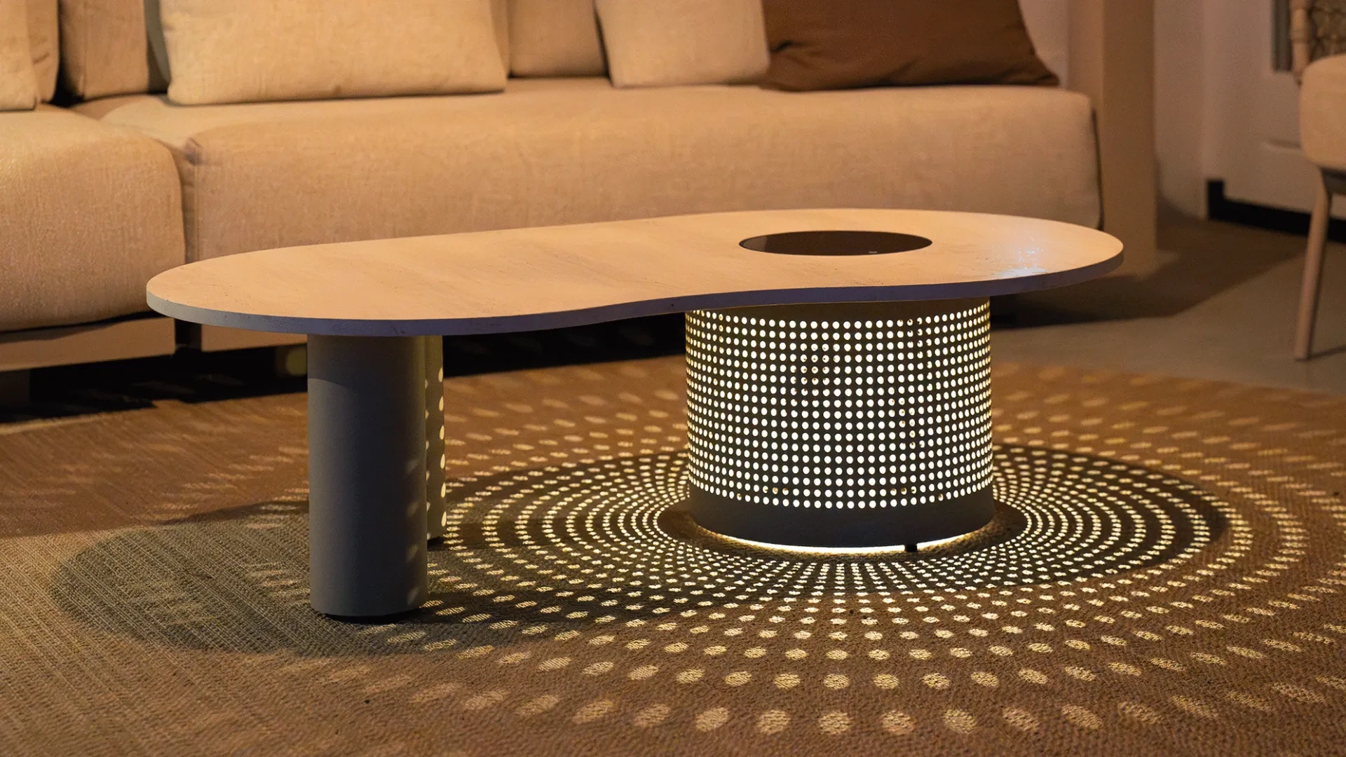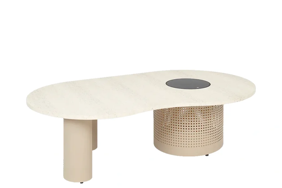 Breng stijl en sfeer samen met de Cosinova loungetafel Sandy beige: een elegante lage tafel met ingebouwde solarverlichting. De Cosinova tafel heeft een organisch gevormd tafelblad in een marmerlook en uitsparingen in het grote ronde frame. Samen met de ingebouwde ledverlichting op zonne-energie ontstaat er een prachtig lichtpatroon op de vloer, zowel binnen als buiten.