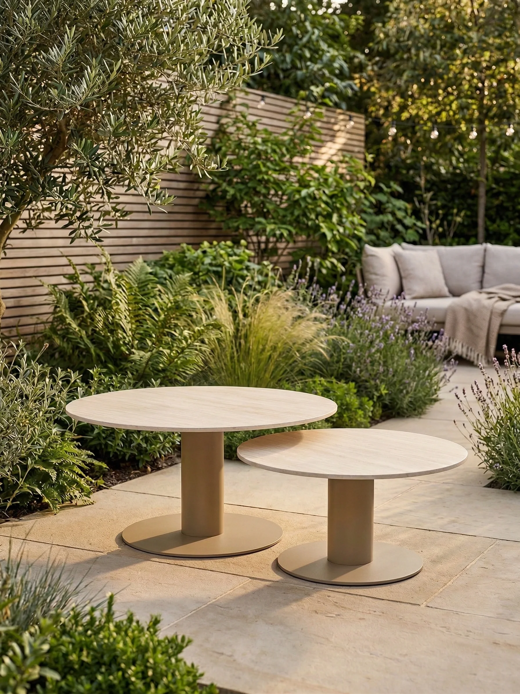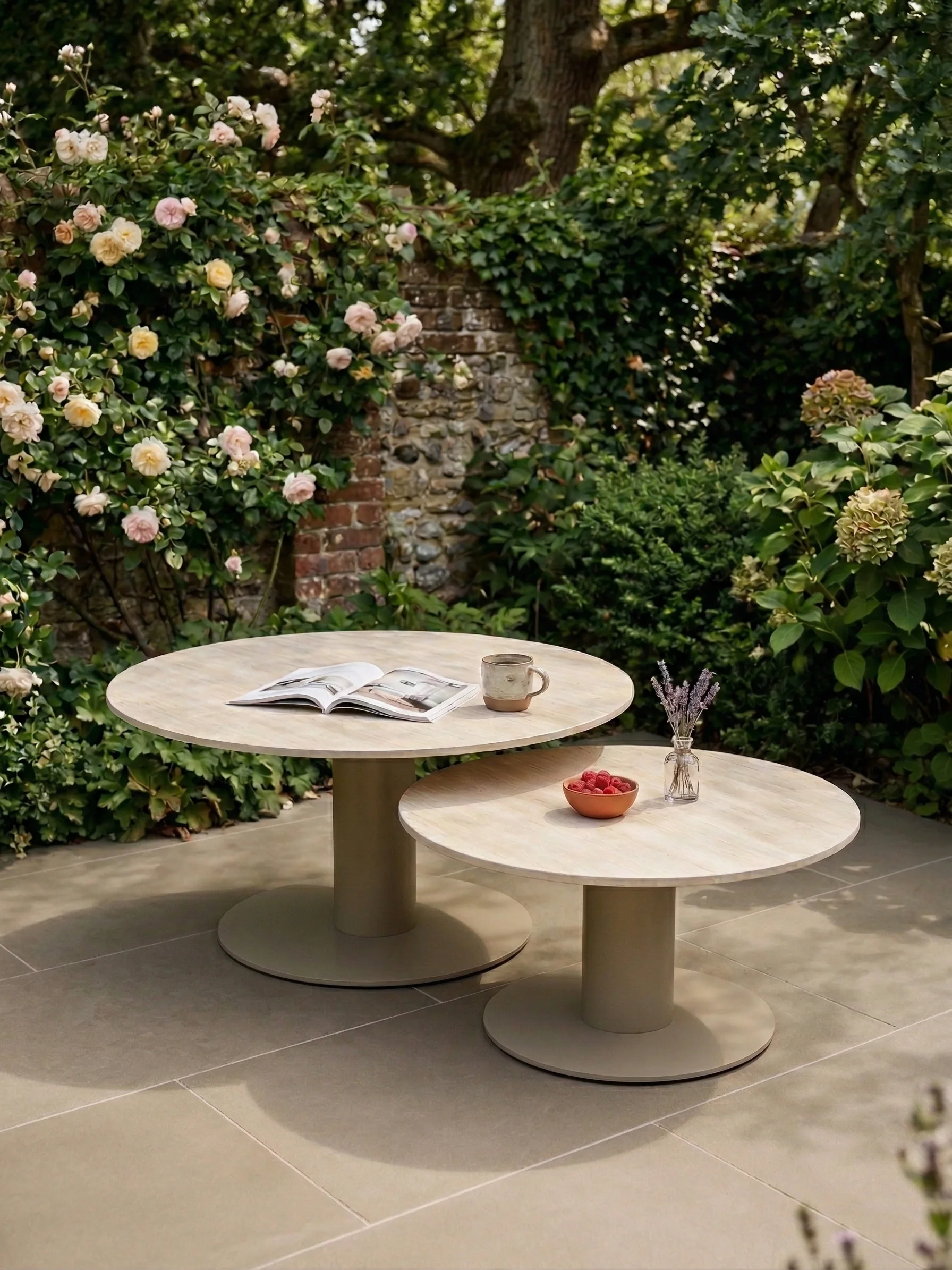 Maak uw Flow loungeset compleet met de Flow Enso loungetafel. De tafel heeft een RVS onderstel met een Tuscan Sand poedercoating en een beigekleurig keramisch tafelblad met een diameter van 80 cm. De tafel is 21 cm hoog. Dankzij het strakke ontwerp en handzame formaat is de Flow Enso salontafel uitermate geschikt voor mix & match.