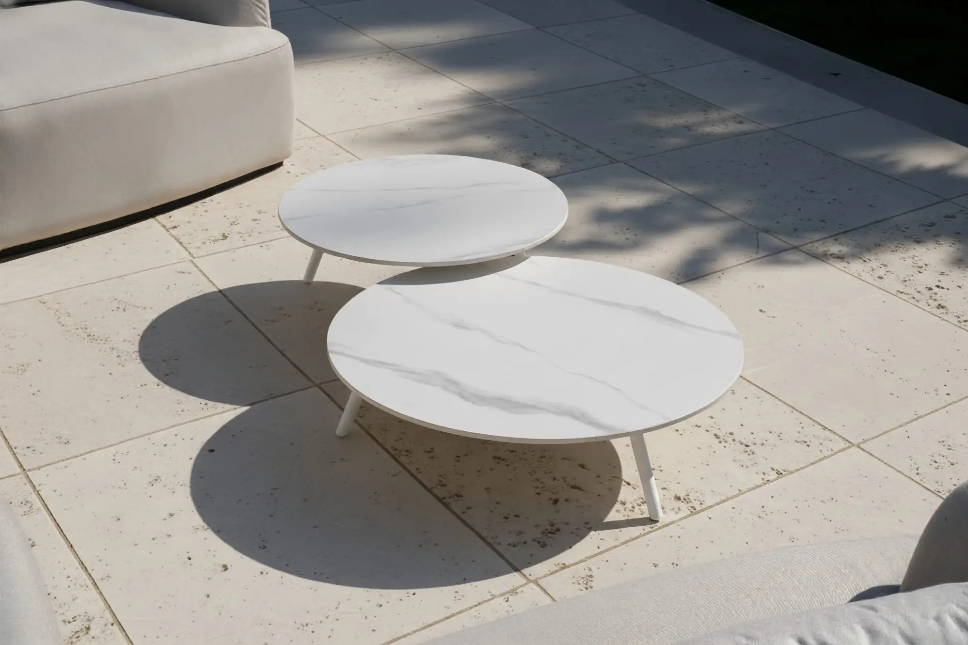 Maak uw Flow loungeset compleet met de Flow Vaya loungetafel. De tafel heeft een RVS onderstel met witte poedercoating en een dik wit keramisch tafelblad met een diameter van 80 cm. De tafel is 21 cm hoog. Dankzij het strakke ontwerp en handzame formaat is de Flow Vaya salontafel uitermate geschikt voor mix & match.