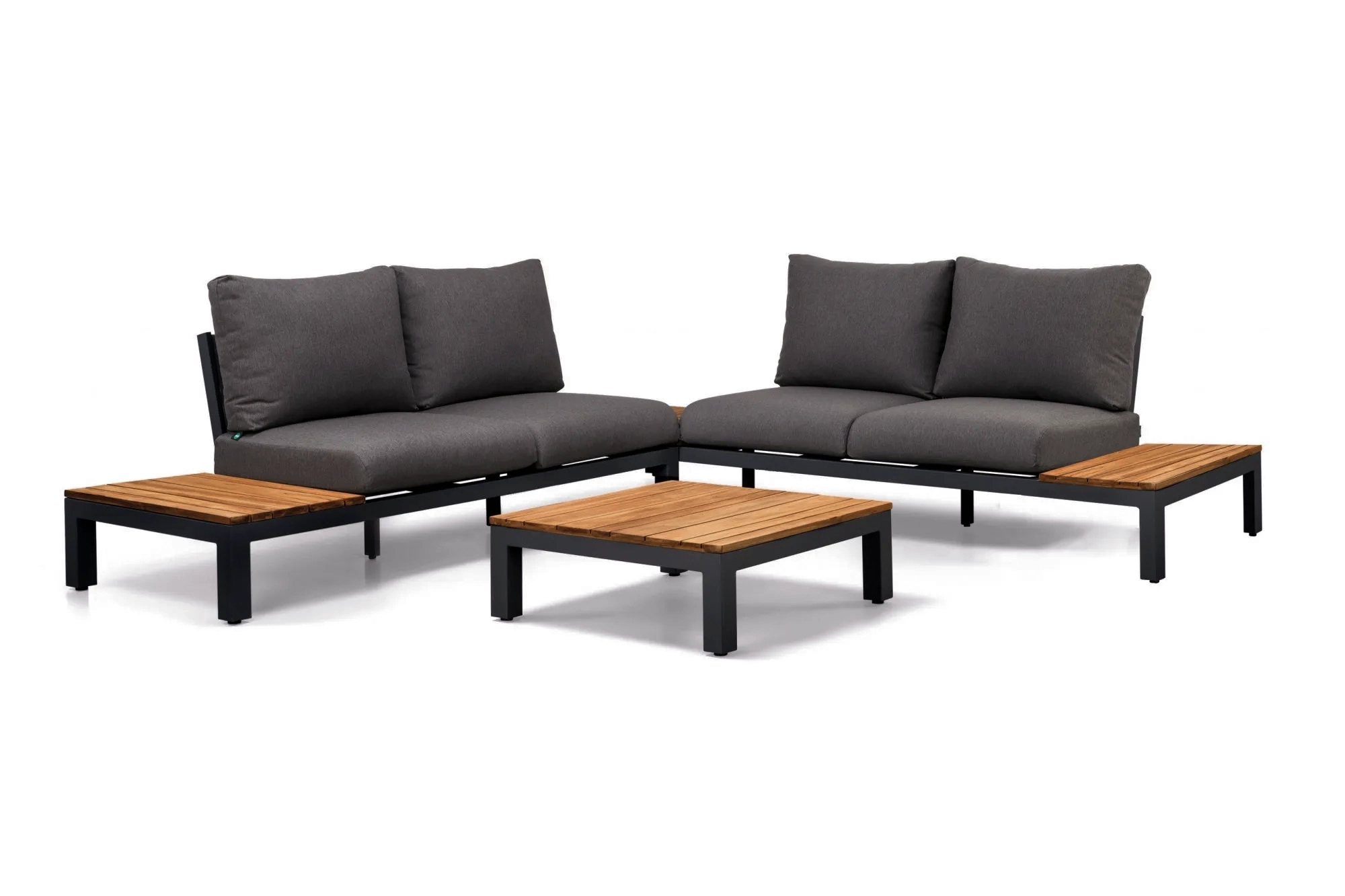 De Alba bank is uitgerust met 2 zijplateaus en 2 loungetafels, waarvan een fungeert als hoektafel. De tafels hebben prachtige teakhouten bladen, die de set extra uitstraling geven. Bovendien zijn ze super handig om de nodige hapjes, drankjes of tijdschriften een plekje te geven.