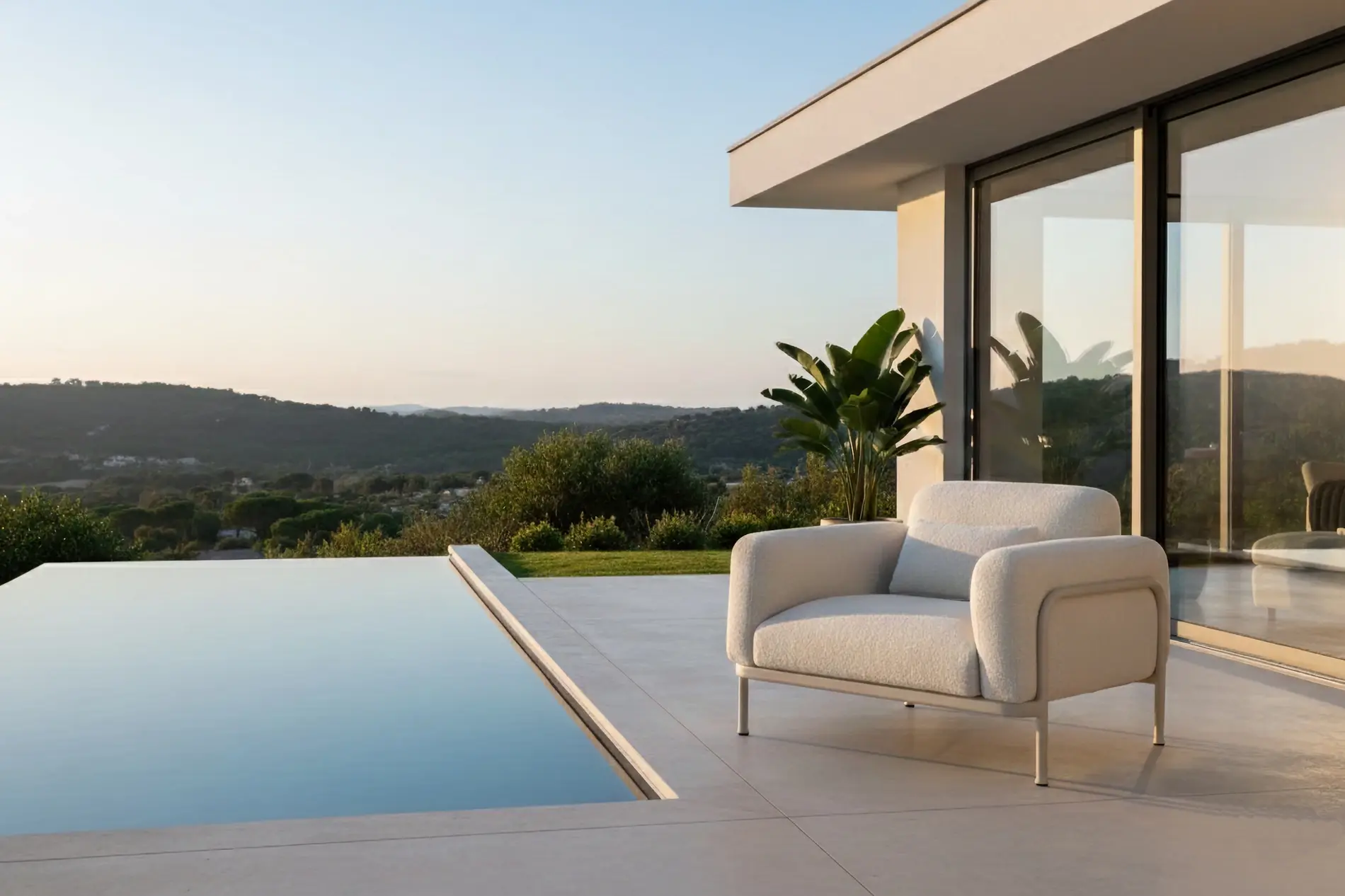 | Materiaal | Aluminium frame, Teak hout, Bouclé kussenbekleding |