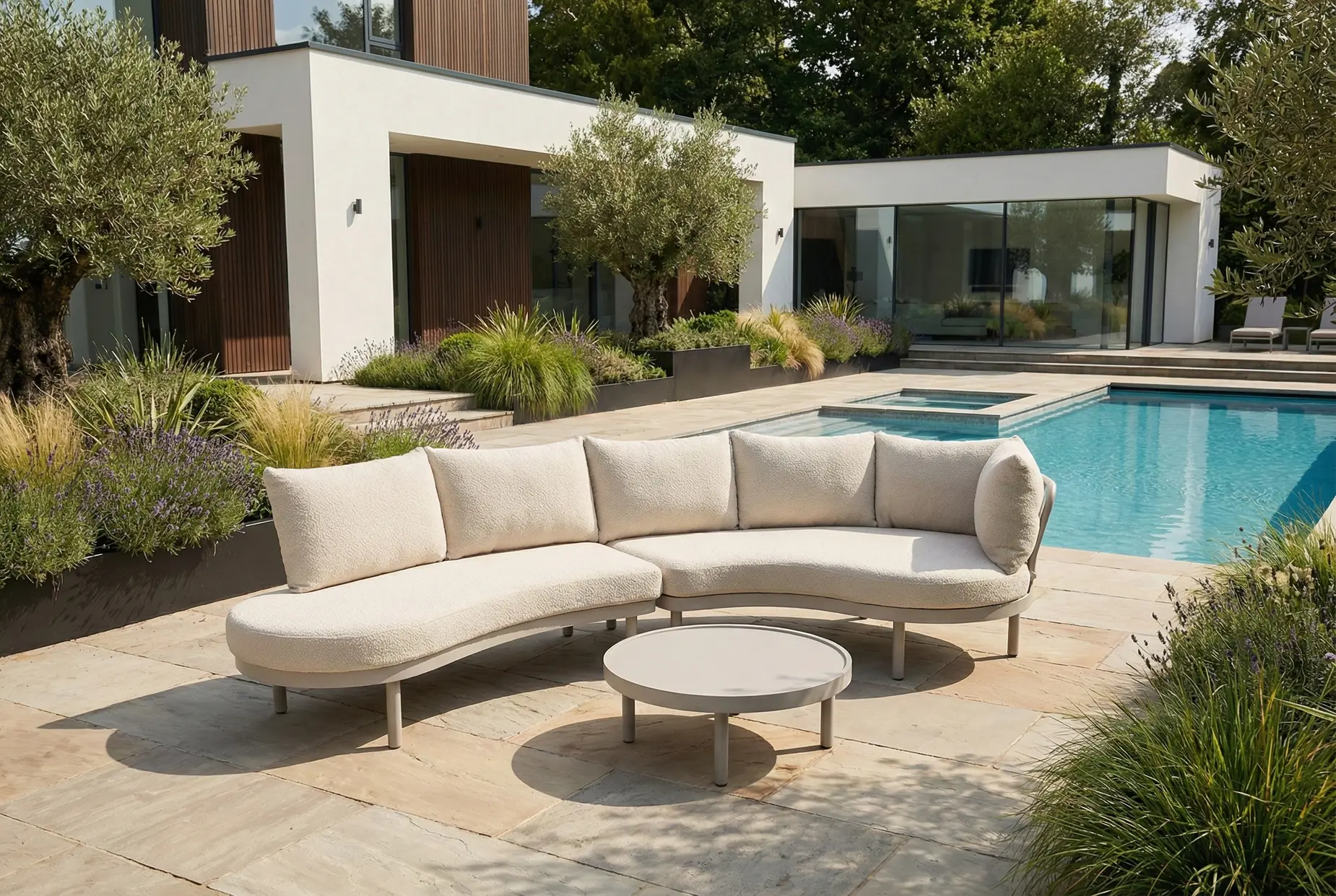 De chaise loungebank is uitgerust met royale kussens die zijn bekleed met zachte weerbestendige Sable Bouclé kussenstof. De kussens voelen daardoor aangenaam aan en bieden daarnaast uitstekend zitcomfort. De kussens zijn waterafstotend en schimmelwerend, zodat ze zonder zorgen buiten mogen blijven liggen.