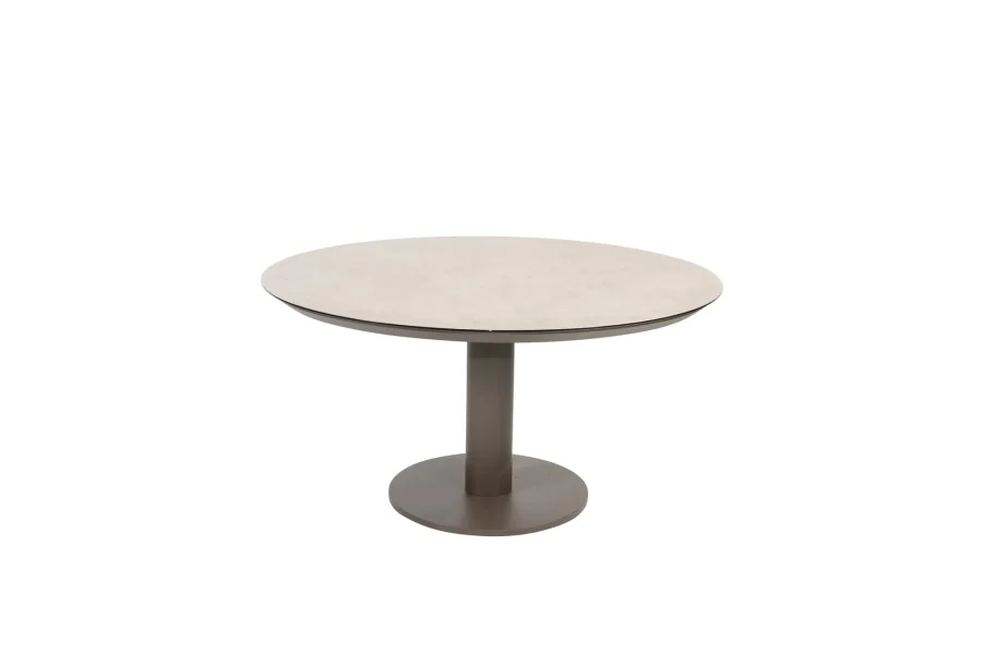 Maak kennis met de Taste by 4 Seasons Sarah low dining tuintafel in een terre uitvoering. De Sarah tafel heeft een robuuste aluminium voet met terre poedercoating en een rond zandkleurig tafelblad met een diameter van Ø 130 cm. De tafel is 69 cm hoog. Het tafelblad van gehard glas heeft een keramische toplaag, waardoor het de uitstraling heeft van natuursteen. Bovendien is het blad kras- en hittebestendig en eenvoudig schoon te maken.