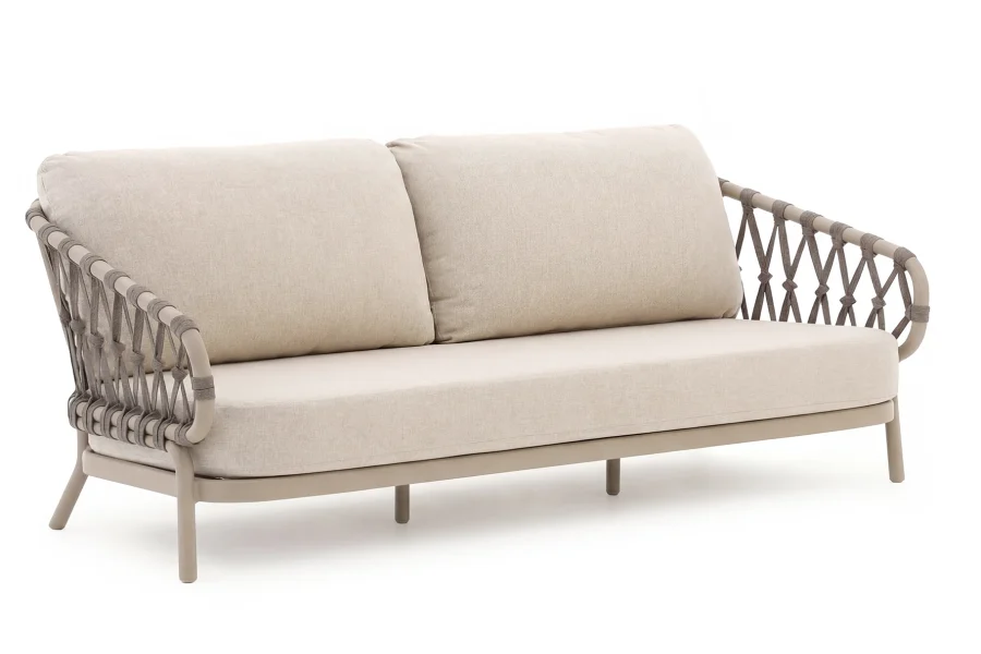 De Tierra Outdoor Natal loungebank heeft een slank aluminium frame met een champagne poedercoating. De bank is afgewerkt met prachtig rope vlechtwerk (touw van weerbestendig Olefin). Dit geeft de bank een luchtige en moderne uitstraling.