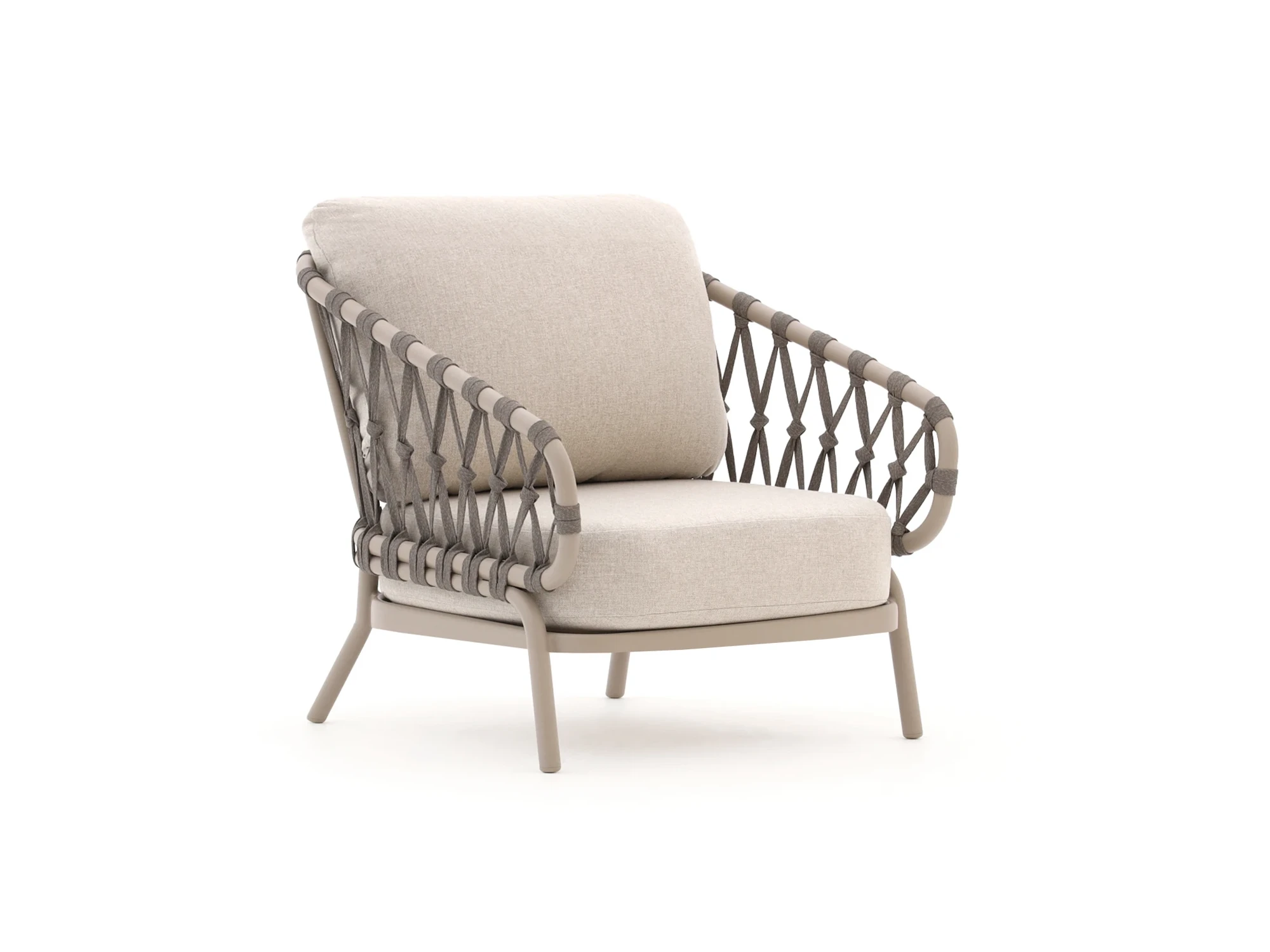 De Tierra Outdoor Natal loungestoel heeft een slank aluminium frame met een champagne poedercoating. De stoel is afgewerkt met prachtig rope vlechtwerk (touw van weerbestendig Olefin). Dit geeft de stoel een luchtige en moderne uitstraling.