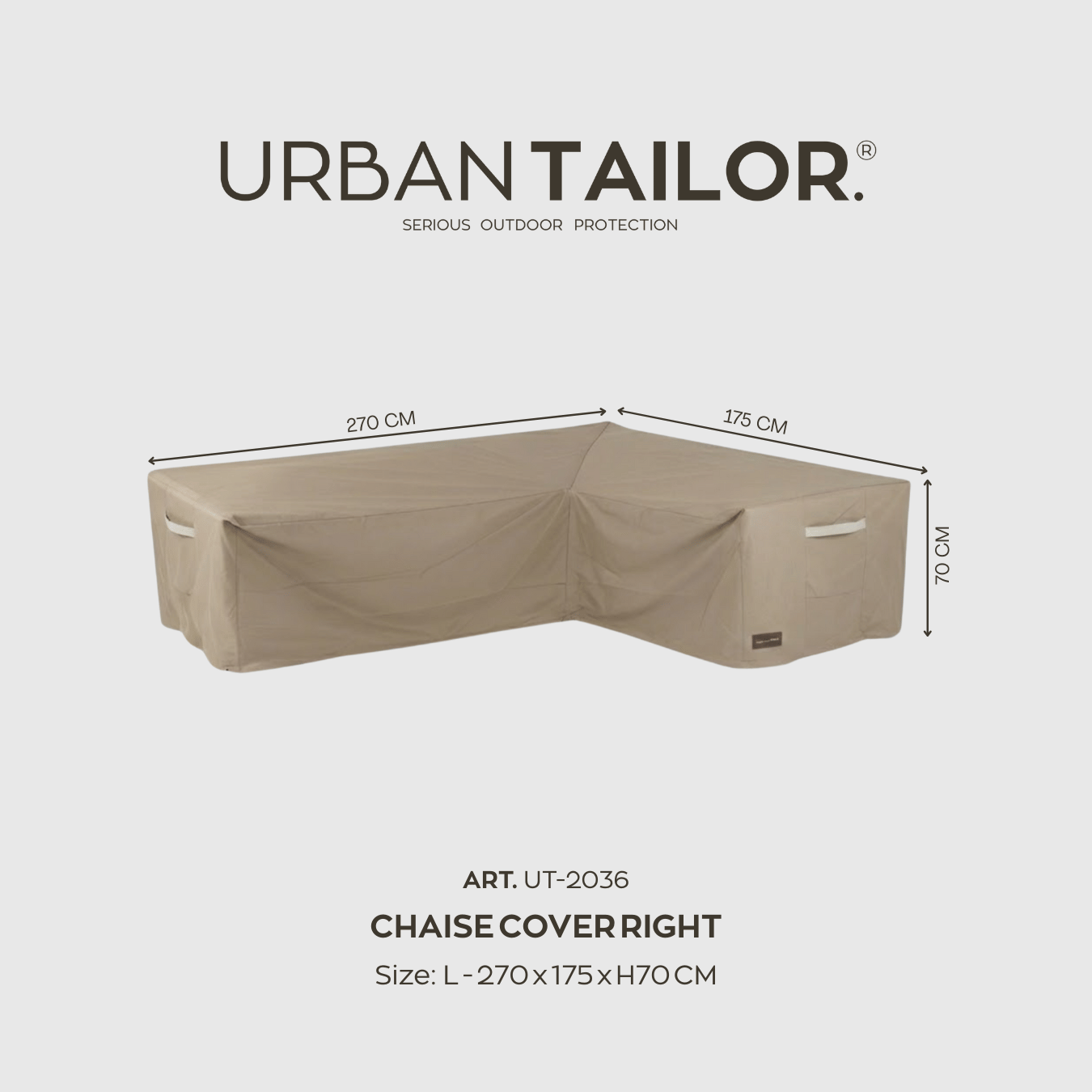 Dit is de URBAN TAILOR. Tuinmeubelhoes voor chaise loungebanken met het chaise gedeelte rechts (Wanneer u voor het meubel staat).